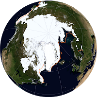 Jos kyse olisi ilmastollisesta asiasta - siis ilmaston lämpenemisestä - voisi ajatella Arktikan lämpenevän niin idässä kuin lännessä yhtälailla. Mutta näin siis ei ainakaan jääpeitteen osalta ole tapahtunut. Näyttää siltä, että Atlantilta on saapunut voimakas lämpimän veden pulssi, joka on nostanut Norjanmeren, Barentsinmeren ja Karanmeren lämpötiloja niin paljon, että jäätyminen siellä on merkittävästi hidastunut, ja Arktisen alueen merijään peite on jo yli viiden vuoden ajan ollut selvästi alle aiempien vuosikymmenien keskiarvon. Mutta läntisellä Jäämerellä tätä jääpeitteen vähenemistä ei ole havaittu. Pikemminkin päinvastoin siellä ja Beringin salmen tuntumassa jääpeite on ollut jopa ennätyksellistä. Samoinhan on ollut myös koko Etelämantereen alueella.